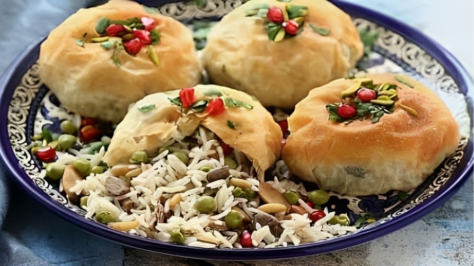- نفرد رقائق الجلاش في وعاء عميق، ثم نضع القليل من الأرز، بالإضافة إلى القليل من الخضار مع اللحم، وبعض المكسرات، ثم تغلق رقاقة الجلاش.