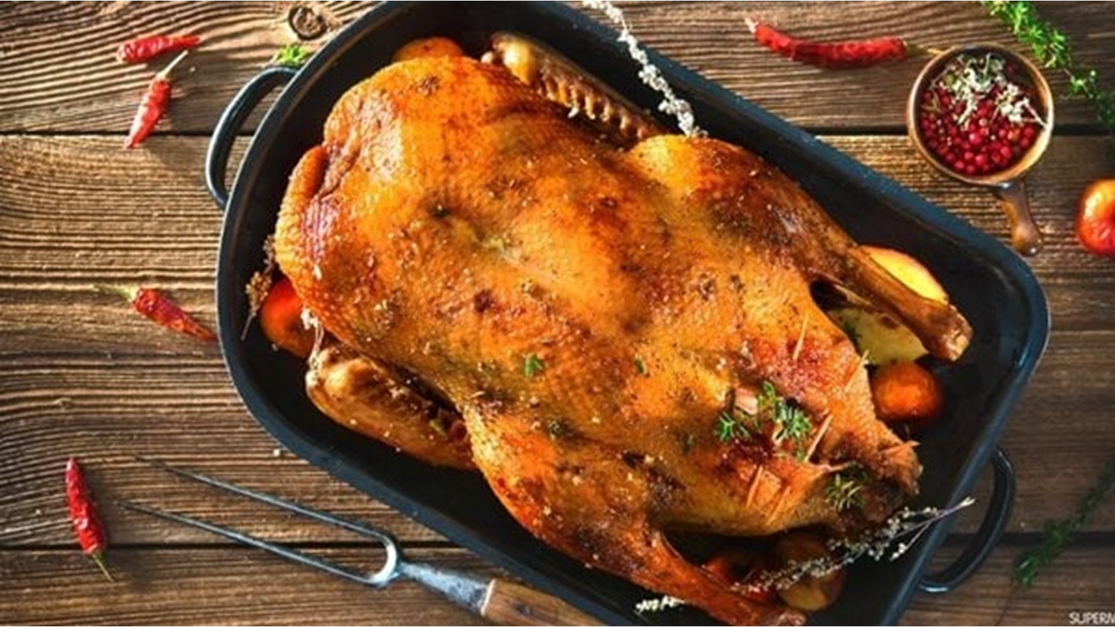 9- قومى باخراج البط من الفرن وضعيه في طبق التقديم.