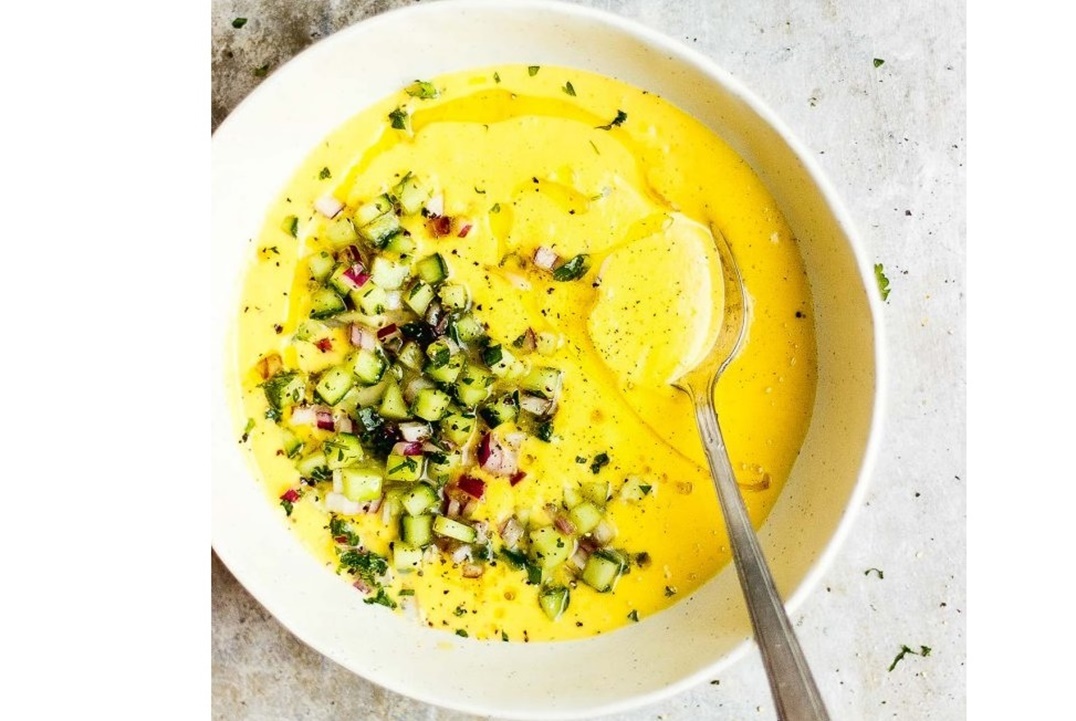 تضاف الشوربة إلى الخلاط، وتخلط جيدًا حتى تجانس القوام، ثم تحفظ في الثلاجة لتبرد لمدة 4 ساعات.