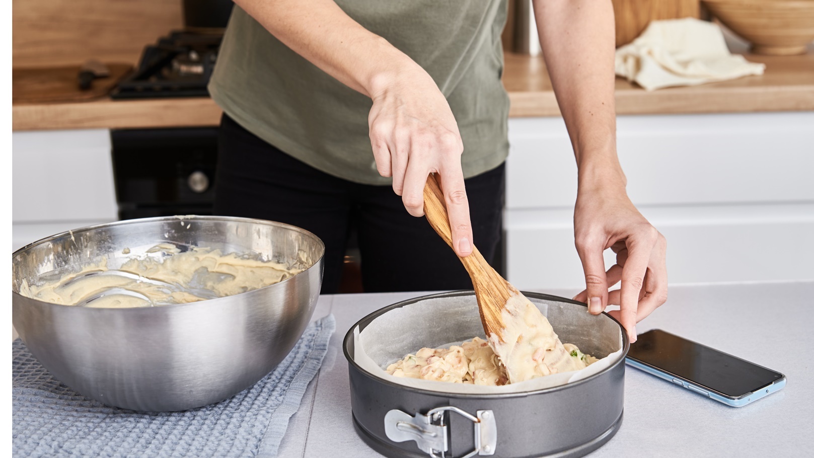8- يجب مراعاة دهن الزبدة بين العجين.