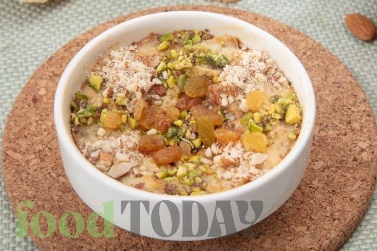 اخبزي أم علي في الفرن لمدة 30-40 دقيقة، أو حتى يصبح لونها ذهبيًا.