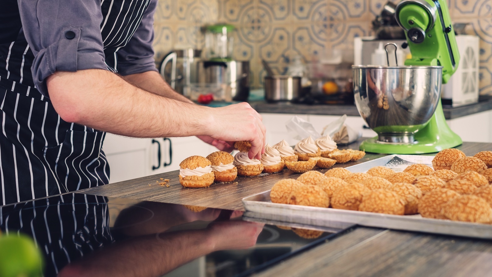 1- نحضر الخلاط الكهربائي ونضع فيه كلا من الدقيق، والملح، والبيض، والماء الدافئ، والفانيليا، والزيت النباتي.