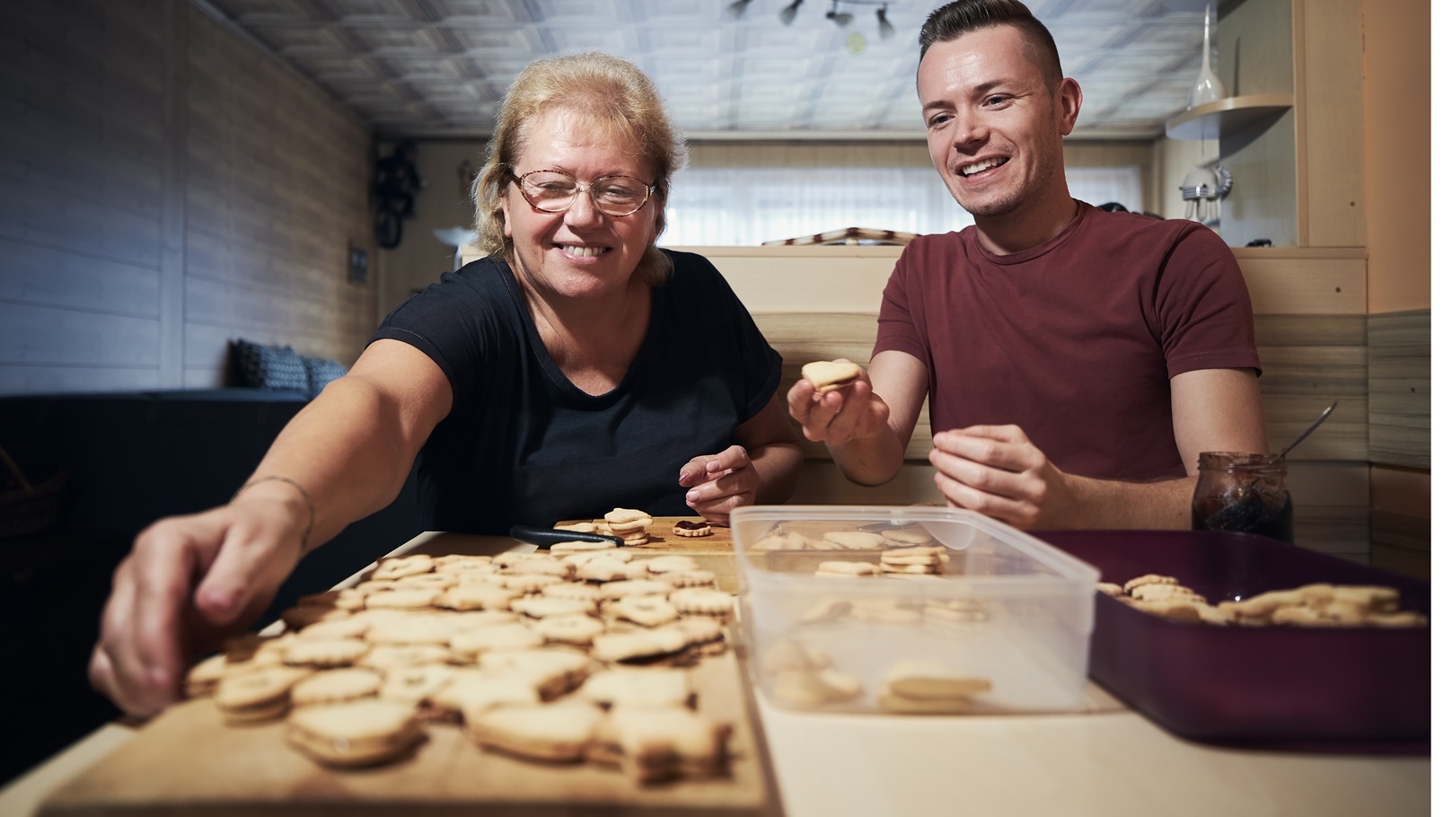1- نحضر وعاء كبير الحجم ونضع فيه البسكويت المطحون والزبدة والسكر ثم نخلطهم معا، كي نحصل على عجينة متماسكة.
