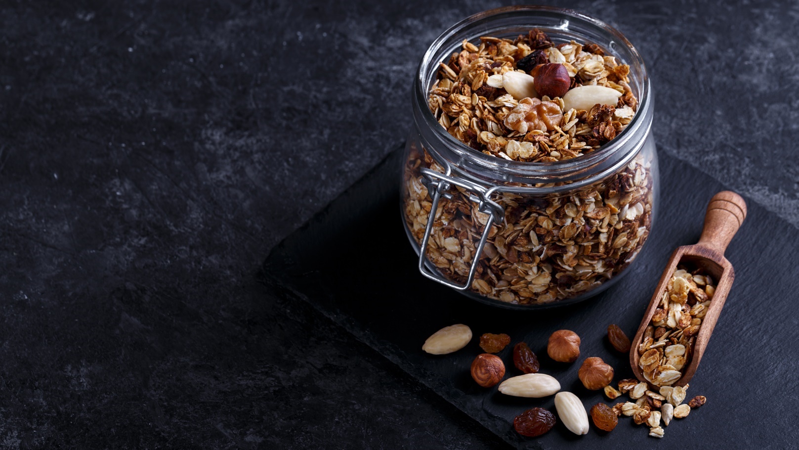 الجرانولا وجبة صحية يمكن تناولها في الفطور أو كوجبة خفيفة (سناكس)، ويتكون من حبوب الشوفان المطحونة والمكسرات والعسل، أو محلى آخر مثل السكر البني أو شراب القيقب، وهي عامة مطبوخة حتى تصير مقرمشة ومحمصة وبنية ذهبية اللون، خلال عملية الطبخ، وتقدم كثيرا مع الزبادي والعسل والفواكه الطازجة (مثل الموز والفراولة والتوت الأزرق) والحليب وأنواع أخرى من حبوب الفطور.
