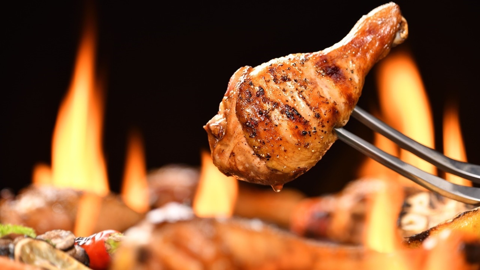 5- تقلب الأسياخ بين الحين والآخر حتى تنضج تمامًا، ولا يترك الدجاج يجف كثيرًا ويقدم.
