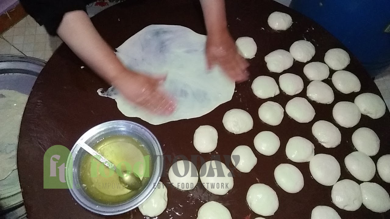 افردي كل كرة على سطح مرشوش بالدقيق حتى تصبح رقيقة جدًا.