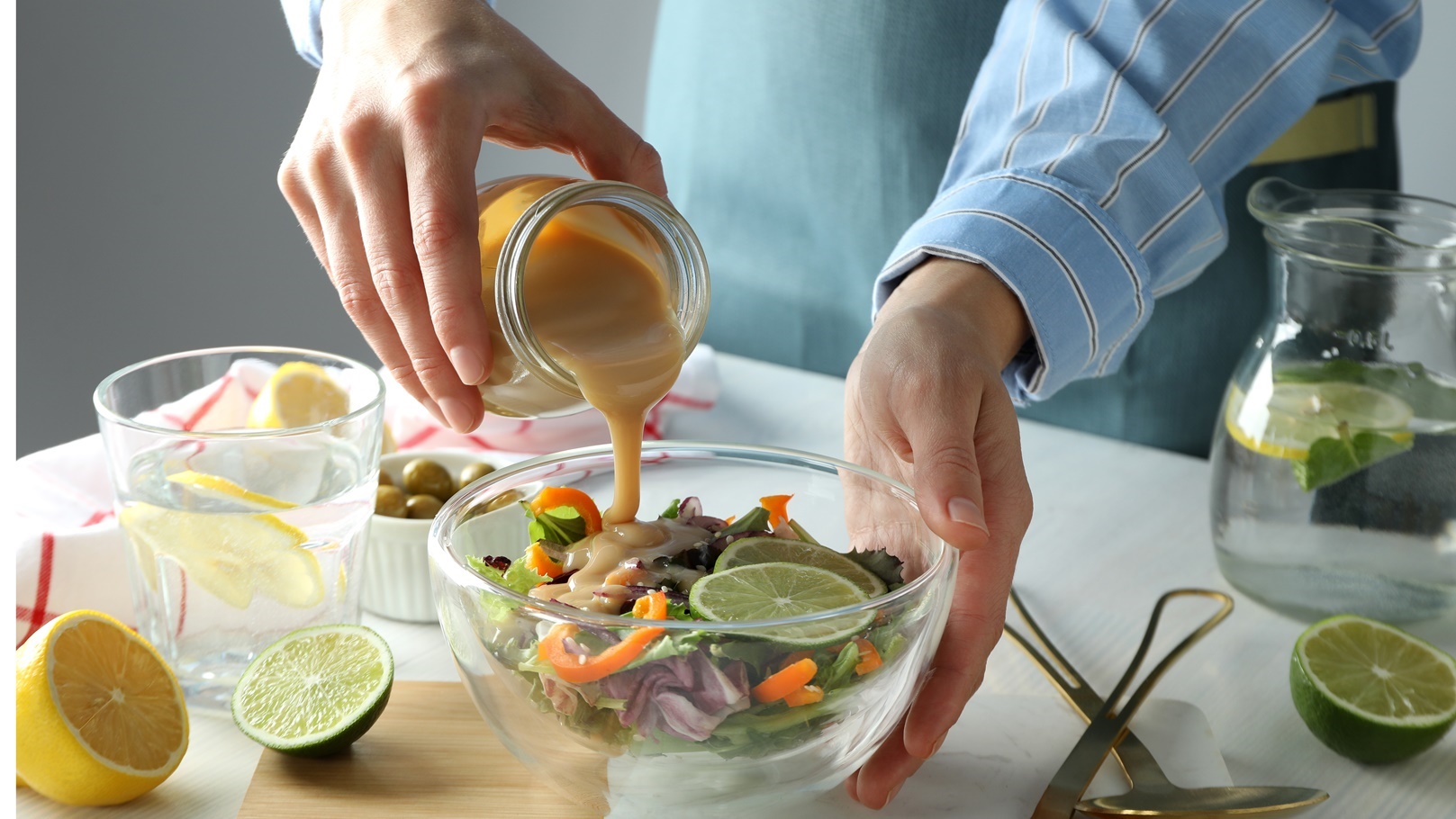 1- نخلط جميع مكونات التتبيلة، ثم نضع شرائح الكبدة فيها.