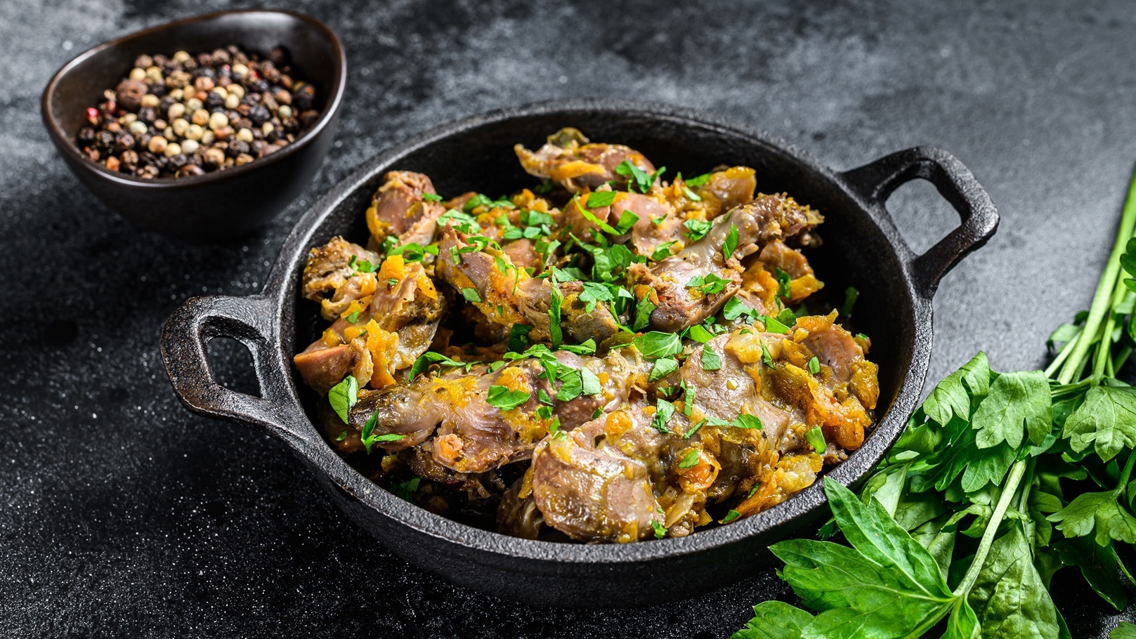 - تشوح قطع الكلاوي والقلب أولاً في زيت الزيتون وتتبل بالملح والفلفل، وعصير الليمون والزعتر مع