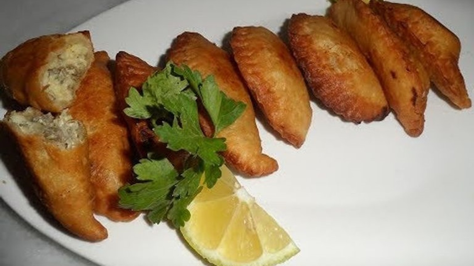 *- قومي بفرد العجينة على ثم ضعي ملعقة كبيرة من المزيج المطهي على سطح العجينة وقومى بلفها ، ثم اضغطى عليها من الاطراف جيدا.