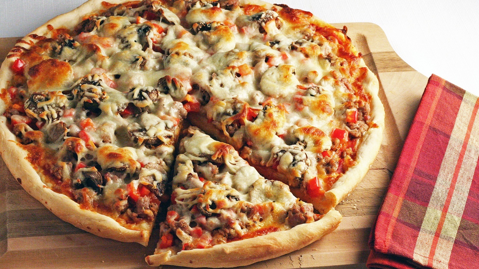 طريقة عمل بيتزا بالسجق والمشروم والزيتون