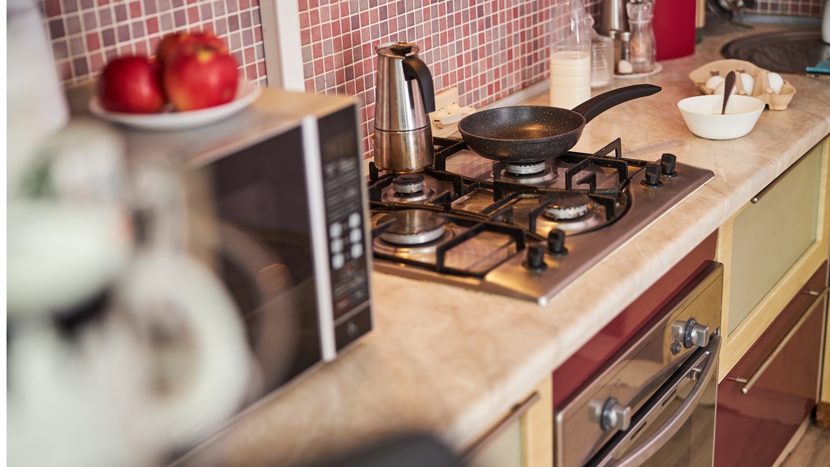 2- نسخن مقلاة على درجة حرارة متوسطة ونضع فيها الزيت النباتي.