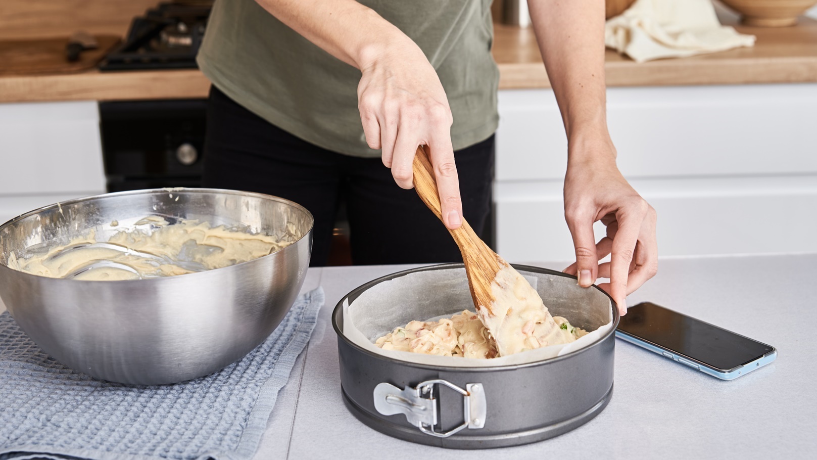 ثم يدخل به قالب التارت ويترك حتى ينضج جيدًا.