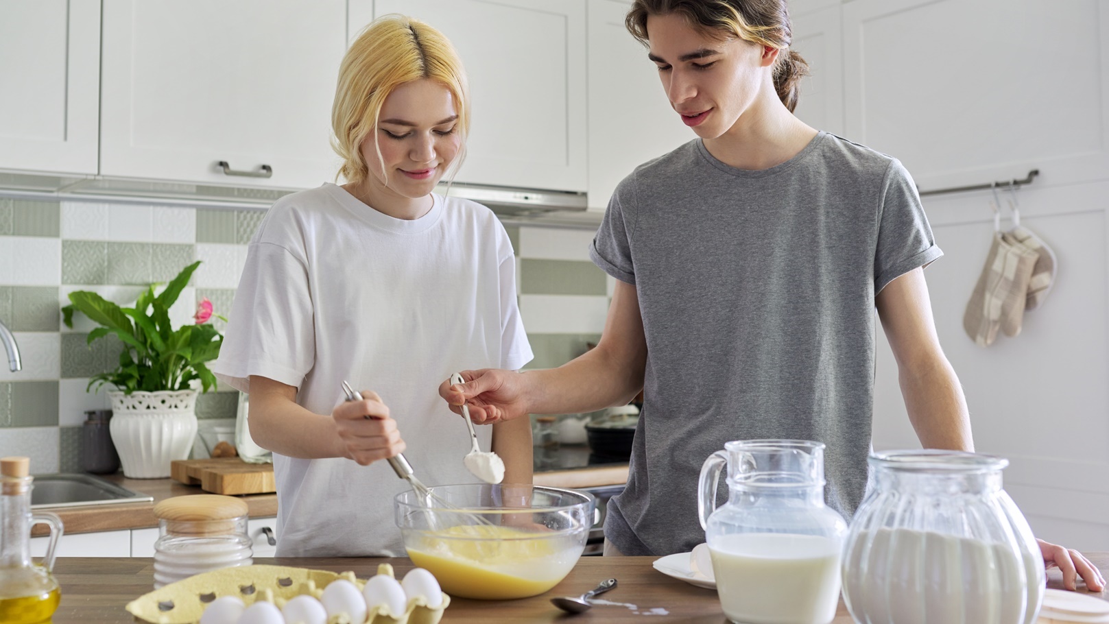 2- نضيف البيض بشكل تدريجي مع التقليب الجيد، ثم نضع الكاكاو المُحلى ونقلب جيداً حتى يتجانس الخليط.