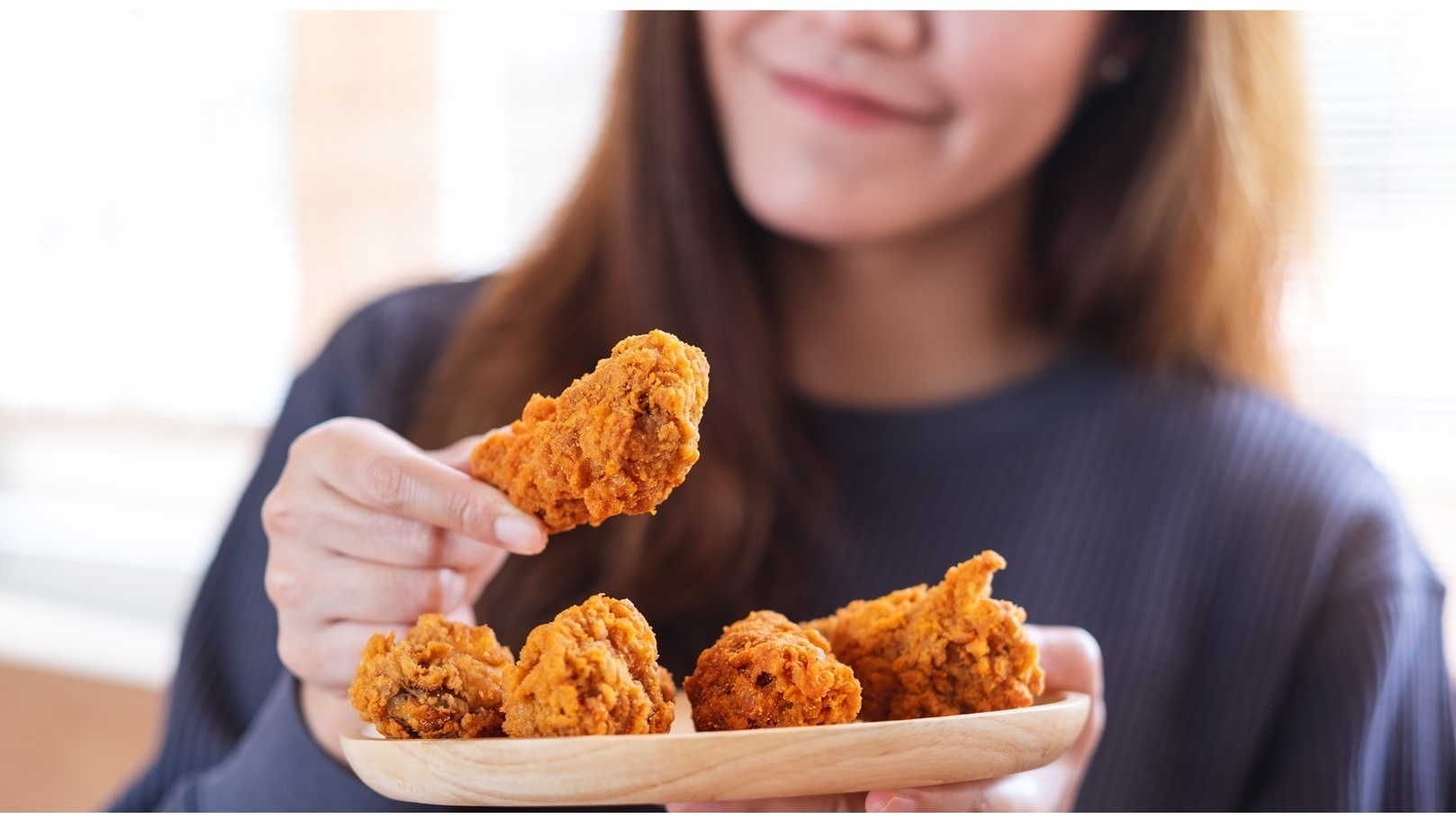 8- يقدم دجاج كرانشي ساخنا مع الصوص المناسب بألف هنا.