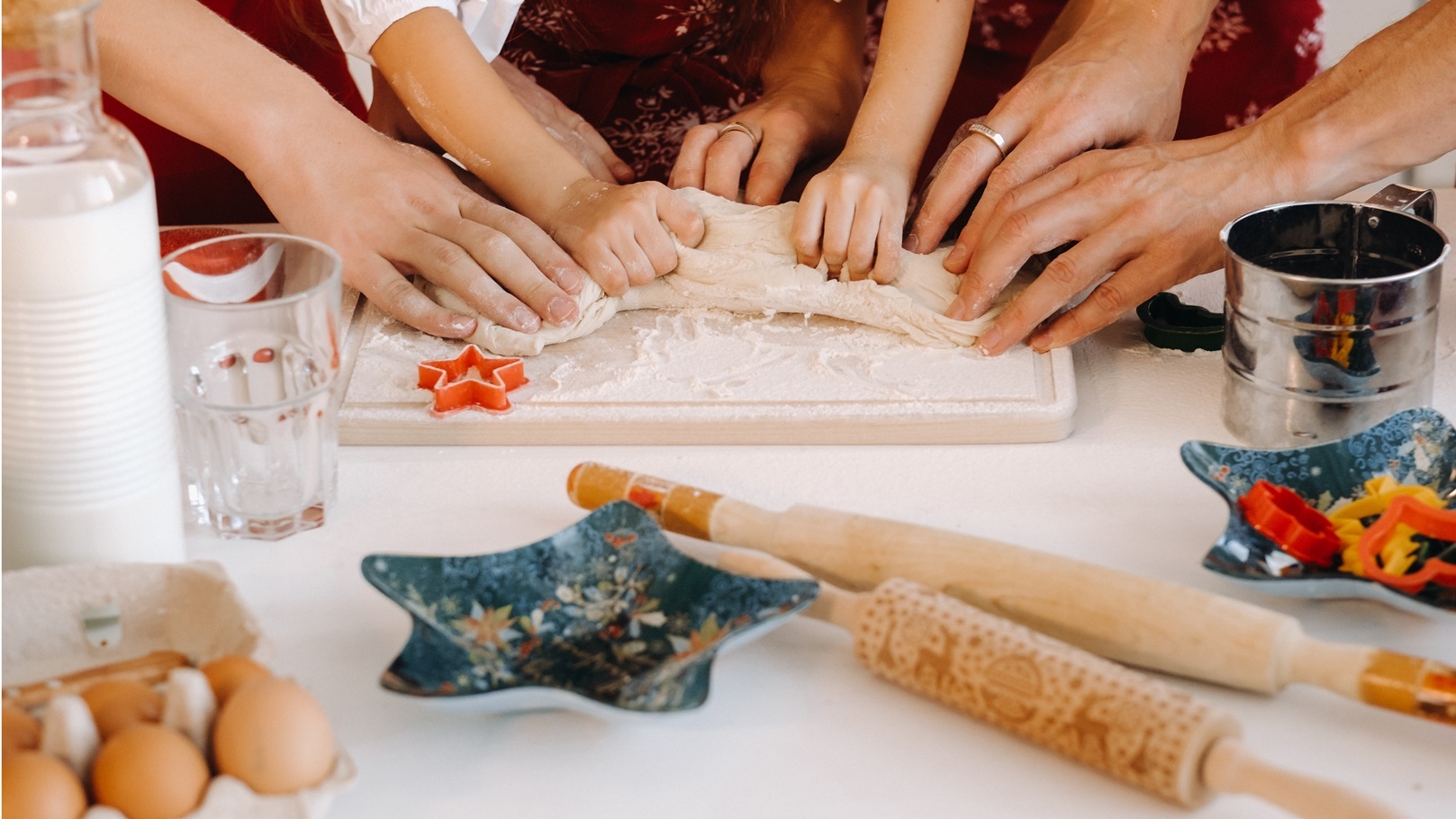 5- نفرد المزيج بين ورقتين الزبدة، ثم نقطع العجينة ونضعها في صينية في الفرن.