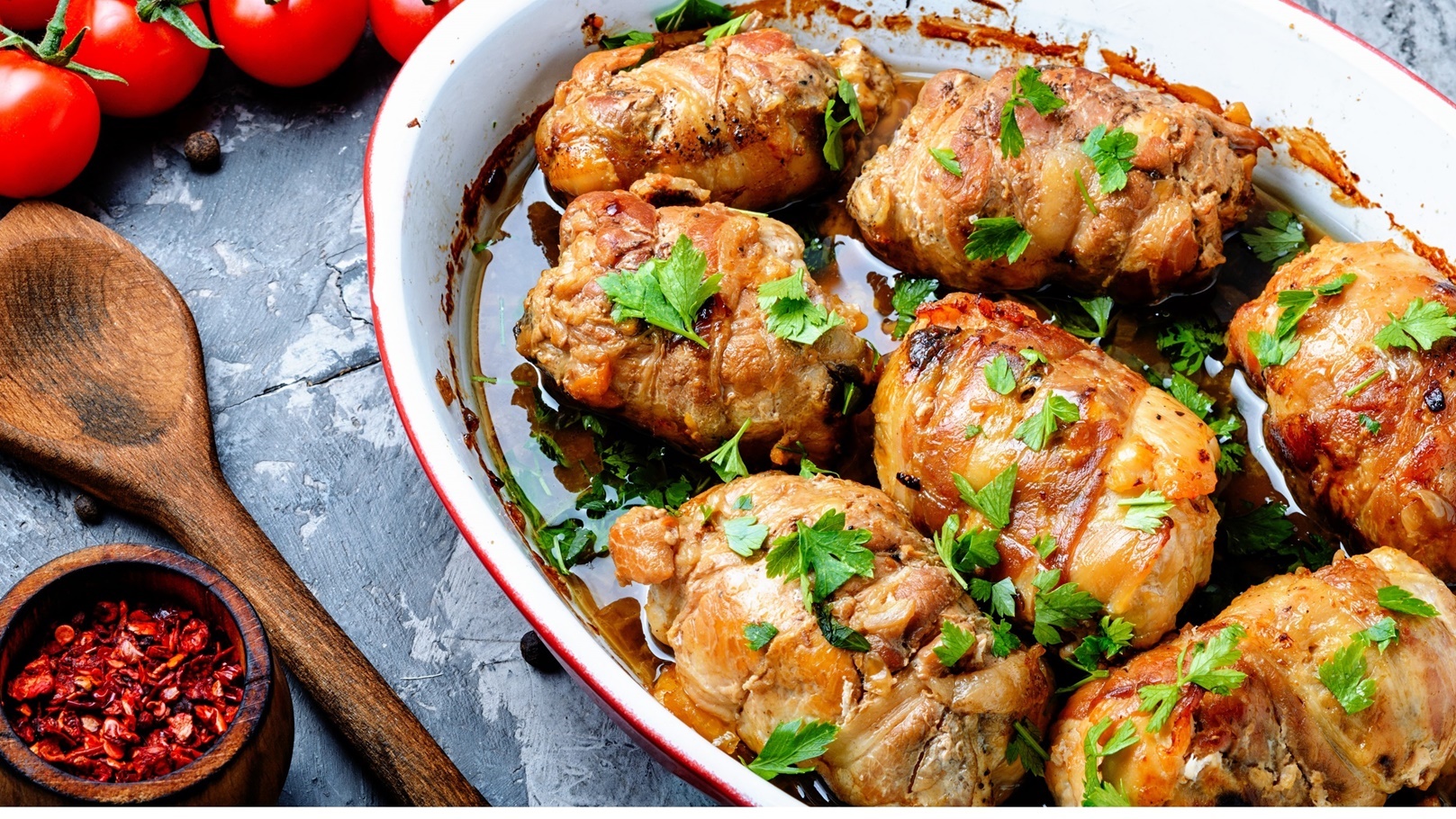 - توضع رولات الدجاج في الفرن حتى يحمر الوجه وترفع.