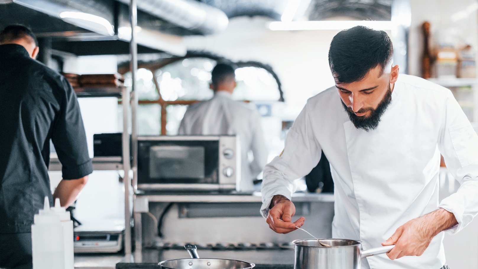 1- نحضر قدر به ماء مغلي على النار ونضع فيه الملح والفلفل الأسود، ثم نضيف صدور الدجاج ونترك الخليط على النار لمدة 15 دقيقة.