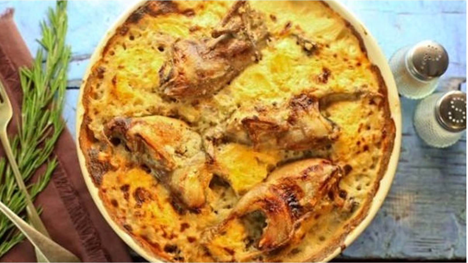 4. نقوم بإخراج الإناء من الفرن ويترك حتى يهدأ ثم يقدم طاجن الأرز المعمر بالسمان على مائدة الطعام كطبق رئيسي مميز وبالهناء.