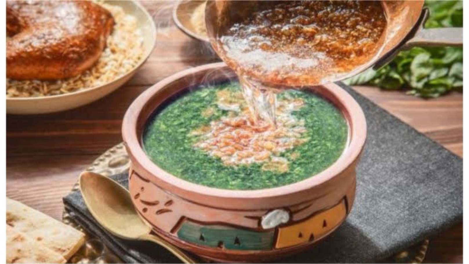تقديم الملوخية ساخنة: قدمي الملوخية فوراً بعد إضافة الطشة للحصول على أفضل طعم.