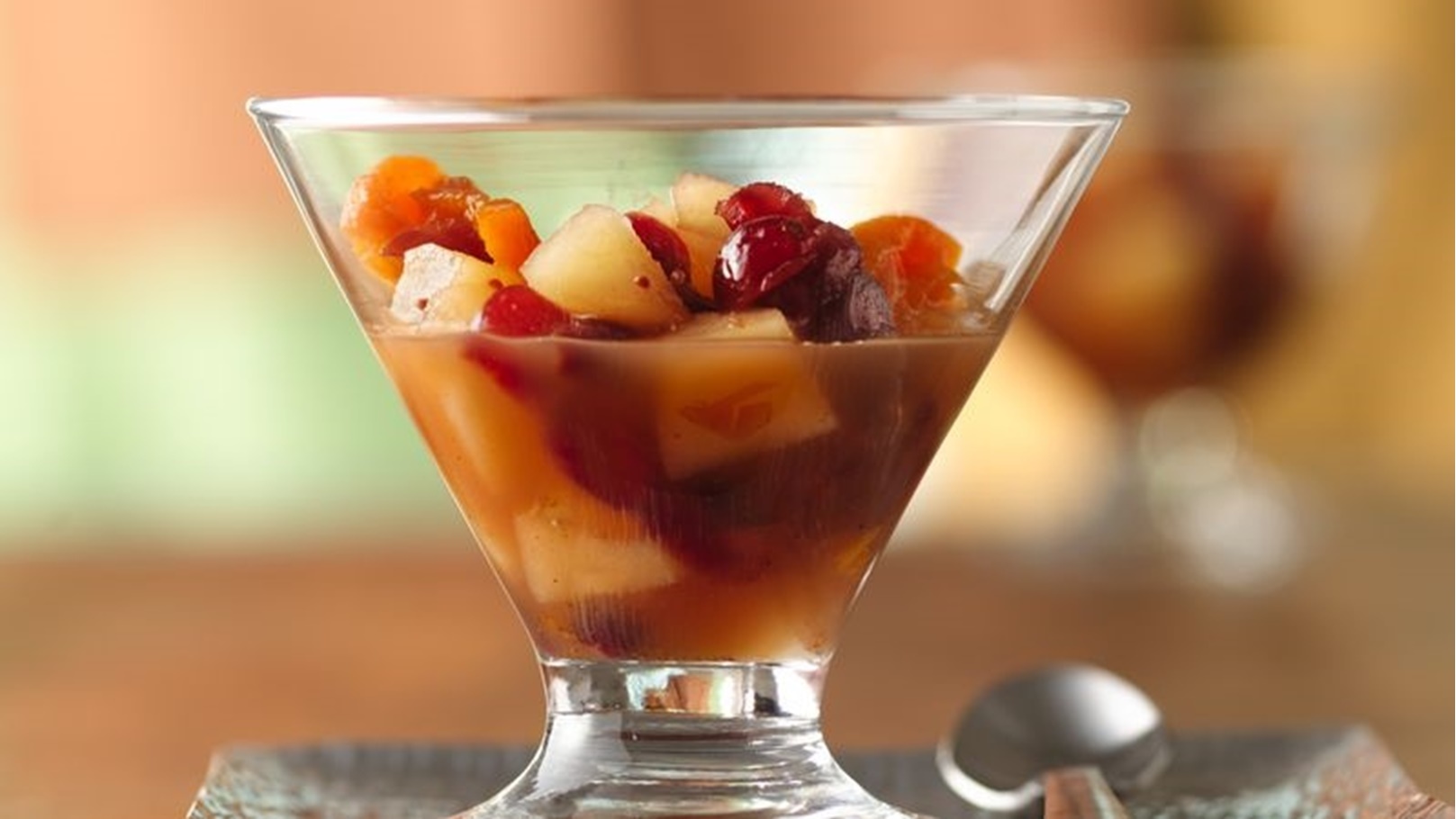 3- نضيف عصير قمر الدين والمكسرات والزبيب والعسل الأبيض إلى الفواكه المجففة ونقلب تلك المكونات جيداً، حتى تمتزج معا.