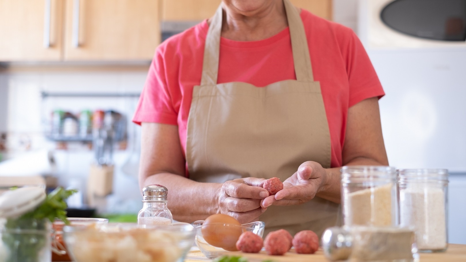 2- تشكل اللحم المفروم على شكل كرات، ثم يوضع طاسة القلي على النار ويسخن