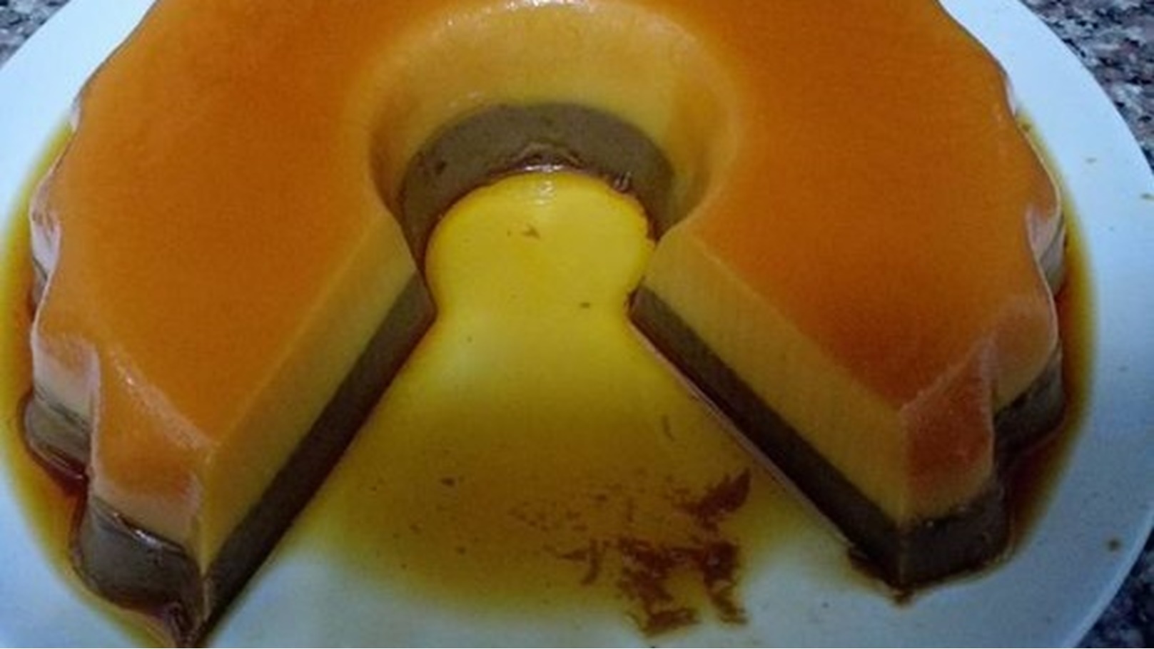 -يوضع الكراميل (الموجود في عبوة الكريم كراميل الجاهز) في قاع القالب.
