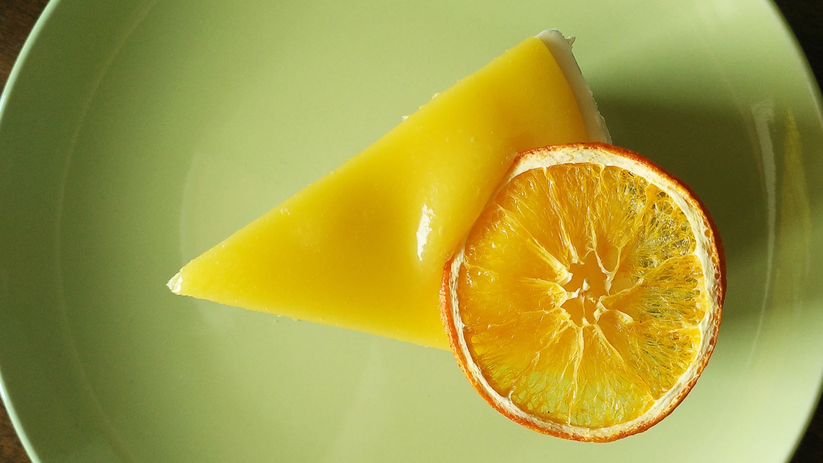 كيكة الأفوكادو بالليمون لونًا ذهبيًا.