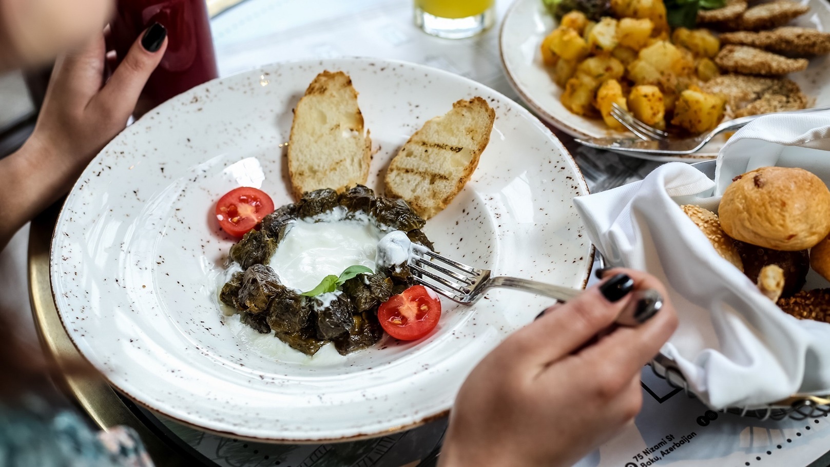 15- يتم تقديم محشي ورق العنب ساخنا، مع السلطة الخضراء بألف هنا.