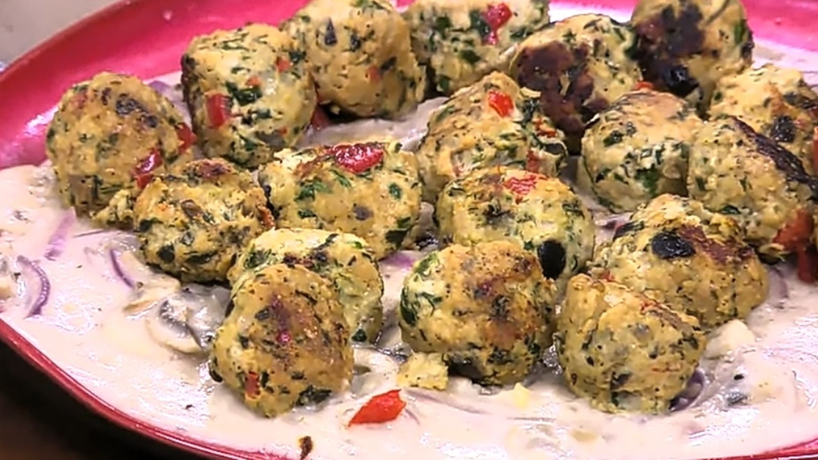 - وضع الملح والفلفل الأسود وضرب مره اخرى، ثم نقوم بتكوير الكورات الفراخ.