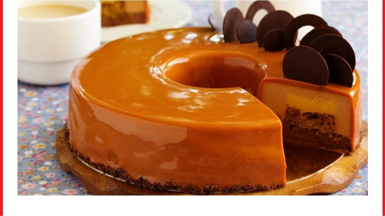 - وبعد خروجها من الفرن تركها لتبرد ويوضع عليها صوص الكراميل وتقدم.