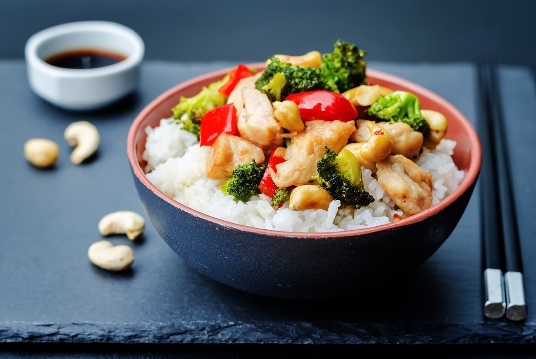 وجبة غداء مميزة هو دجاج "الكاشو" الذي يشبه دجاج "الماسالا" أو الفاهيتا المكونة من قطع الدجاج المتبلة مع الأرز مع البهارات المتنوعة.