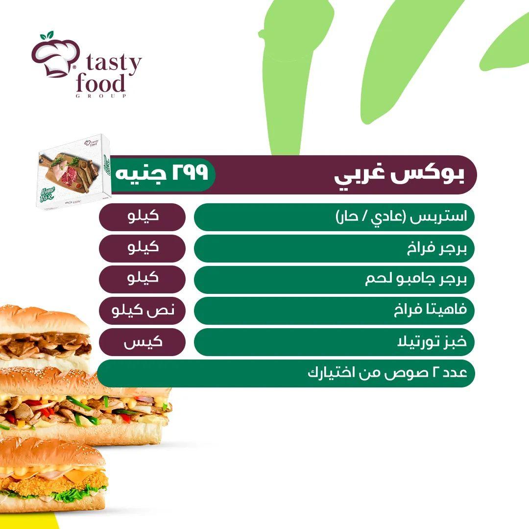 منيو tasty food يقدم لكي عدد من الـ boxes بداخل كل واحد منها شيف يعمل على راحة بالك من خلال توفير أكلات
