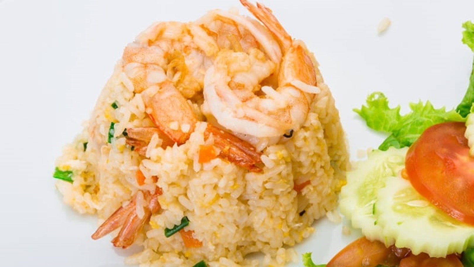 ضع الجمبري والأرز والبقدونس، والملح، والكاري، والفلفل الأسود، والكمية
