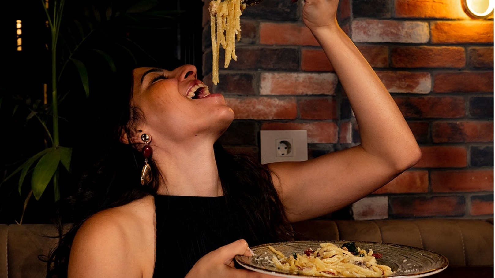 فتاه تأكل باستا