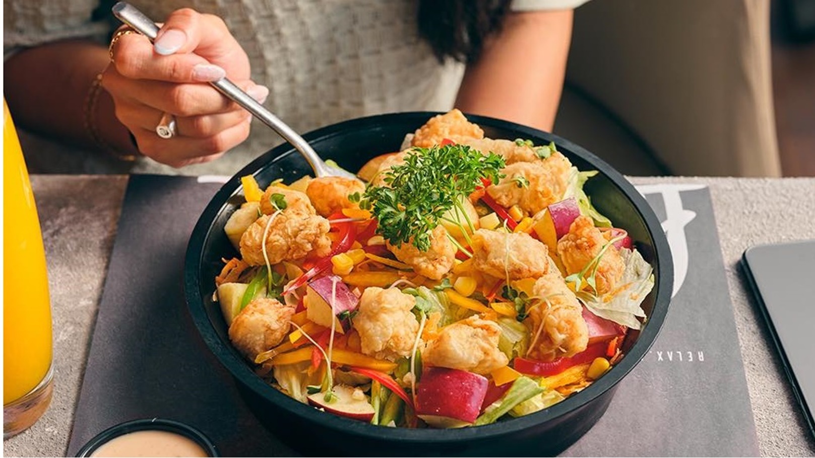 يقدم المطعم قائمة إفطار عالمية، وقائمة عشاء انتقائية، مع مجموعة واسعة من المأكولات الإيطالية، وتحول اختيار الموقع إلى "المكان المثالي للاسترخاء في الشيخ زايد"، ومن اختيارات الفطار المتعددة وقع اختيارنا على Butter Scrambled egg وهو عبارة عن خليط البيض بالكريمة، مع سوسيس اللحم البقري، والذي يقدم مع مشروم وخبز سواريه وبطاطس ويدجز.