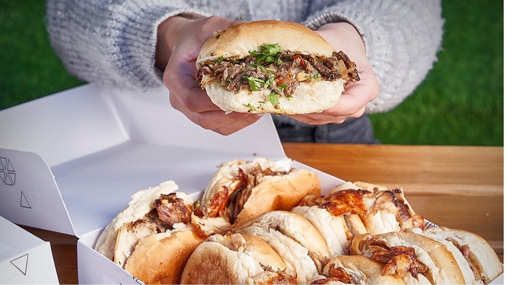 سواء كانت لحم أو دجاج داخل خبز مصنوع وكأنه آيس كريم على شكل كونو ليكون سهل الأكل