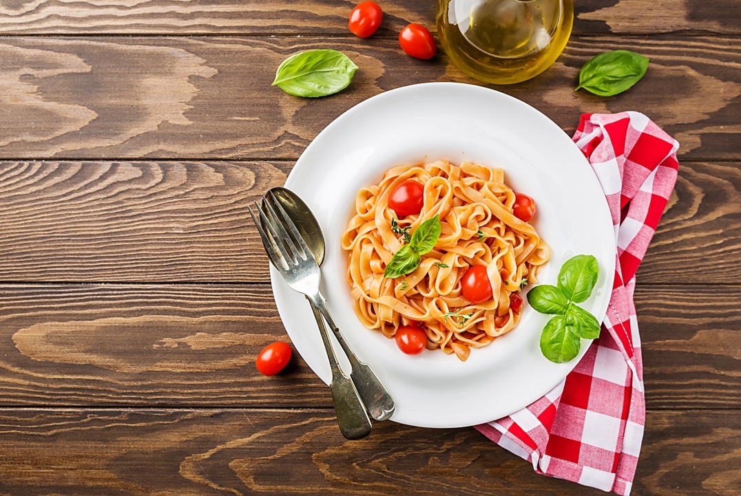 طبق الباستا بصلصة الطماطم والريحان بدون استخدام الكربوهيدرات المتواجدة في