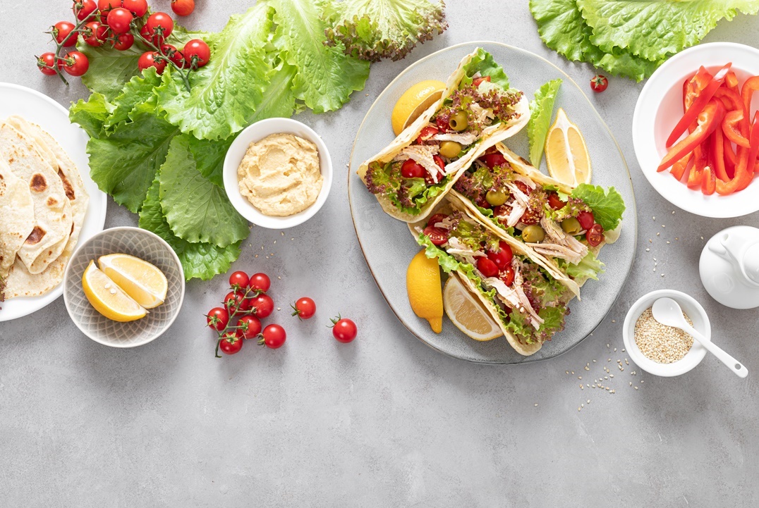 الغذائية، الذي يحتاجها الجسم، ويتكون من قطع من صدور الدجاج المشوي والخس وصوص