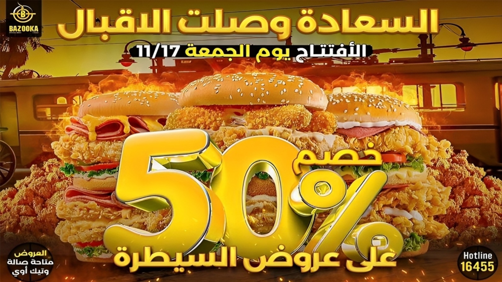 أعلن "بازوكا" عبر صفحته الرسمية على "الفيس بوك" عن طرحه لعدد من التخفيضات والخصومات بمناسبة افتتاح فرعه الجديد في الأسكندرية بمنطقة الإقبال يوم الجمعة المقبل الموافق 17-11، علمًا بأن تلك العروض سارية على طلبات الصالة والتيك أواي فقط.