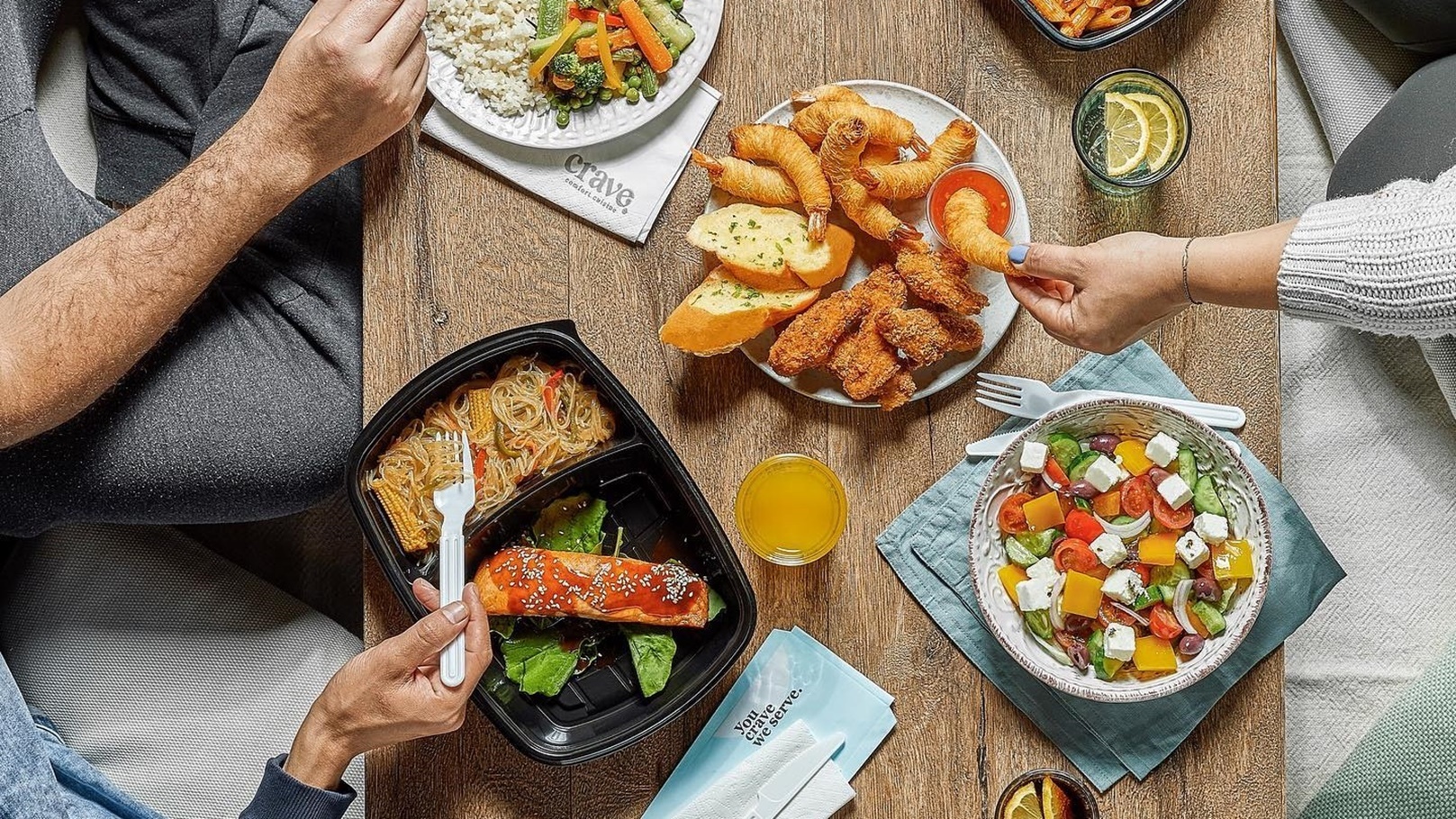 يقدم Crave أيضًا Salmon Teriyaki بقطع السلمون الطازج مع صلصة تيرياكي والفاصوليا الخضراء والبصل الأخضر والسبانخ الطازجة ويقدم مع المكرونة.