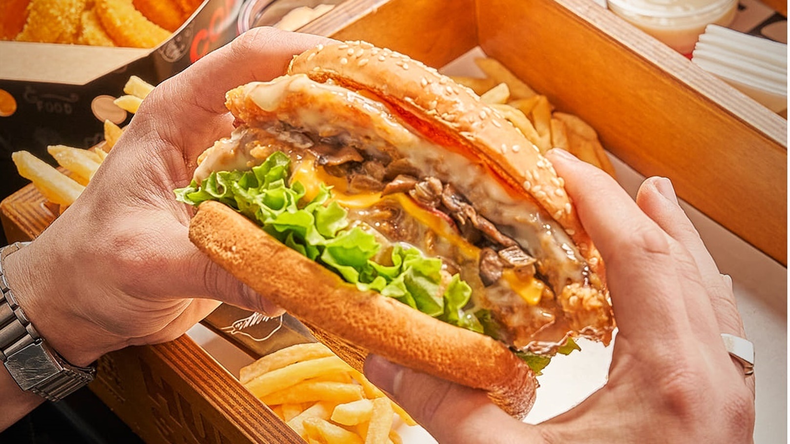 سندوتش البيف مشروم من أكثر السندوتشات التي يشتهر بها مطعم Hunger Station ويعشقه أصحاب المزاج العالي في اختيارات الأكل سندوتش فخم يشعرك بقيمة كل مكون به قطع البيف المشوية على اللهب، مع صوص المشروم وقطع البصل المكرمل زاد الطعم حلاوة، مع إضافة قطع الجبن الشيدر والخيار المخلل ولا تنسى طلب الكوكاكولا لتكتمل الفخامة.