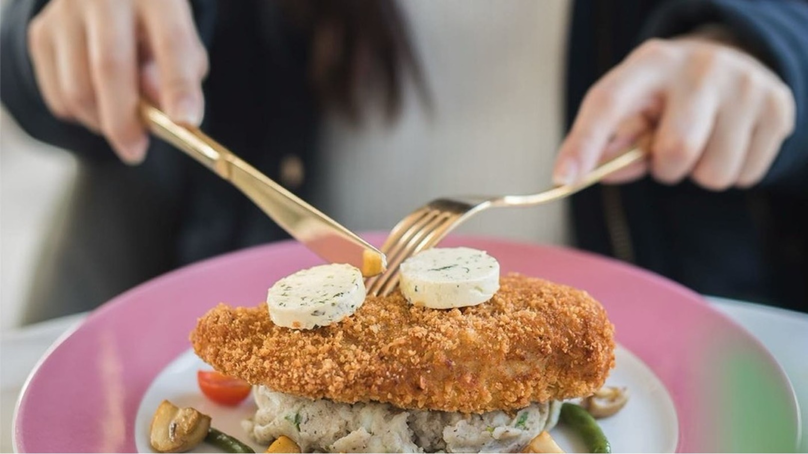 فتاه تأكل طبق فرنسي