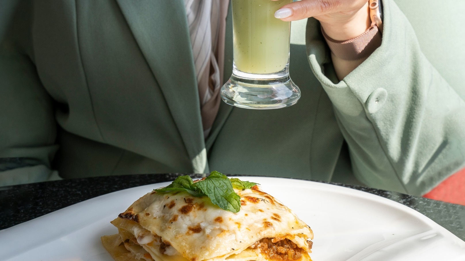 وإذا كنت تريد تجربة أكلة خفيفة يمكنك اختيار السلطة الأغرب وهي السلطة الخضراء مع الفواكة وهي عبارة عن خضار ورقي مع الفواكة الموسمية مع الأفوكادو والجوز المحمص وجبن الماعز وخل البلسميك.