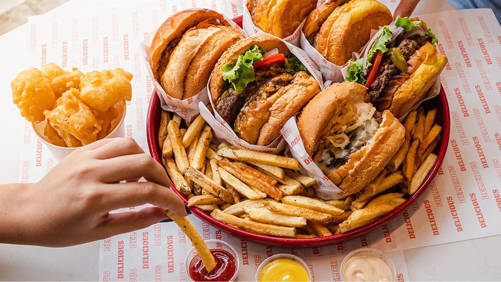 برجر" الذي يتكون من جبنة شيدر، وحلقات البصل المقلي، وصوص باربيكيو حار، أما