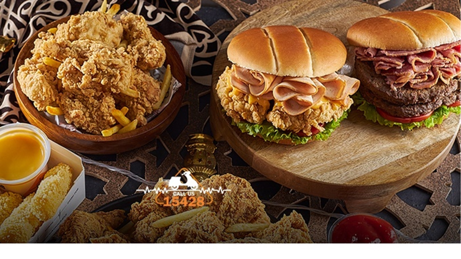صوص هارت اتاك المميز) و ساندوتش راب الدجاج الذي يتكون من (صدور الدجاج المقرمش الحار، صوص تويستر، خس، داخل خبز