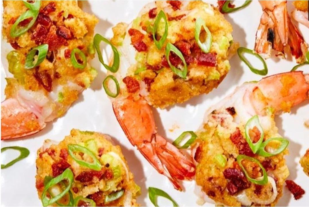 وفي أي وقت، ينصح باستخدام الجمبري الجامبو، ويكون الحشو من البصل الأخضر وفتات الخبز والبيكون البقري وقليل من التوابل والفلفل