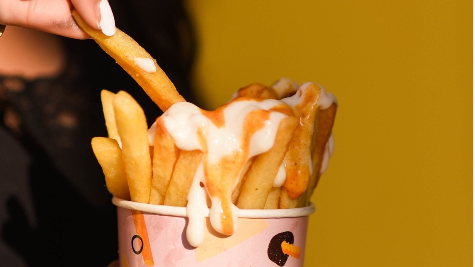 ويُمكنك تجربة البطاطس بأكثر من شكل، منها الـ French Fries العادية والـ Curly Fries بحلقات مُتبلة، والـSweet Potato وهي بطاطا مُقطعة ومقليّة، بطعم البطاطا المسكّر الذي يجعلها مُختلفة وشهيّة، ومن يهتم بالبطاطس لابد أن يهتم بالصوصات ويعطي لها اهتمام خاص، ومنها صوص المايونيز، والمايونيز المُدخن، والتومية، وصوص مسطردة بالعسل، بطعم مسكر إضافي لطعم المسطردة لمُحبي الـSweet and Sour، وأيضًا صوص الـChili يُحضر بطعم مسكّر مع إضافة العسل له.