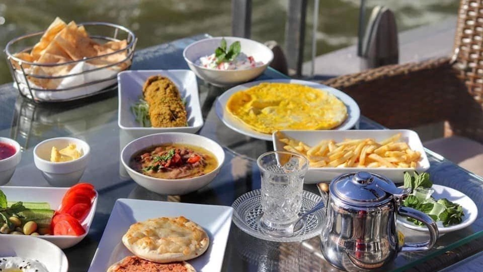 الإفطار الشرقي التقليدي كالفول، والطعمية والباذنجان، والمخللات، يُمكنك تجربة