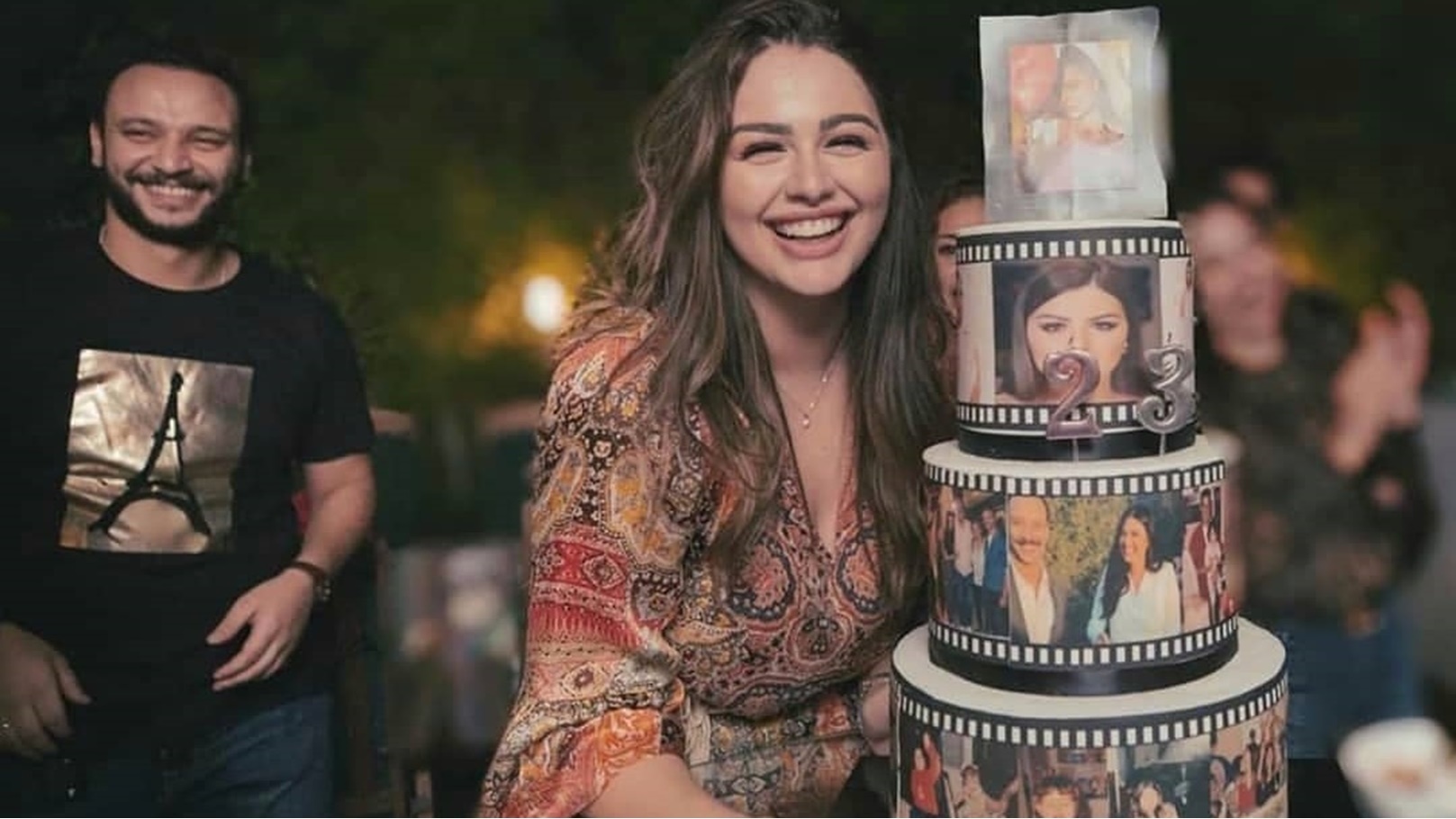 النجوم ومنهم هنا الزاهد التي احتفلت بعيد ميلادها بتورتة عليها صورتها ومصصمة