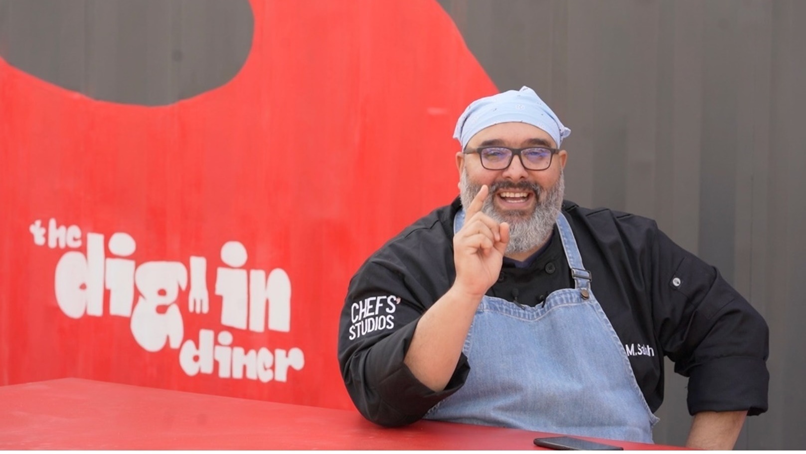 الشيف محمد صلاح في مطعمه Three Diner بالتجمع الخامس، فهو مطعم مبتكر يحمل اسم "Three Diner.. Dig In" أو ما يعني اغرق داخل الطعم، يقدم العديد من اختراعات السندوتشات